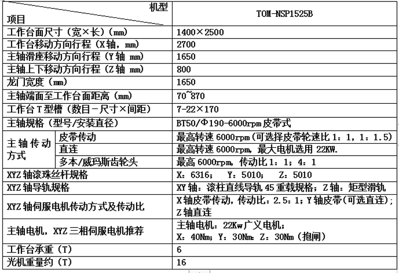 光机技术参数